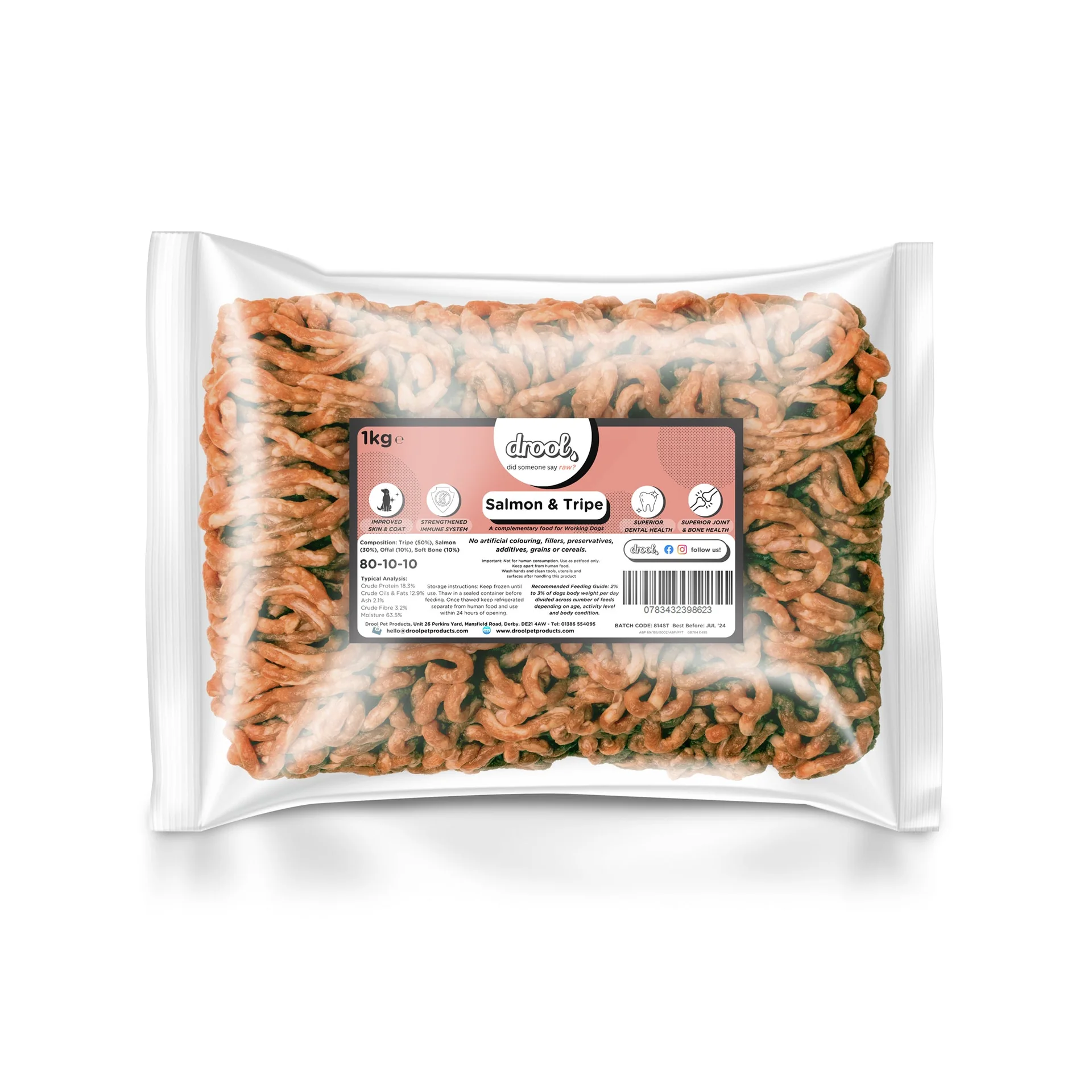 Drool Salmon & Tripe Freeflow Mince 1kg